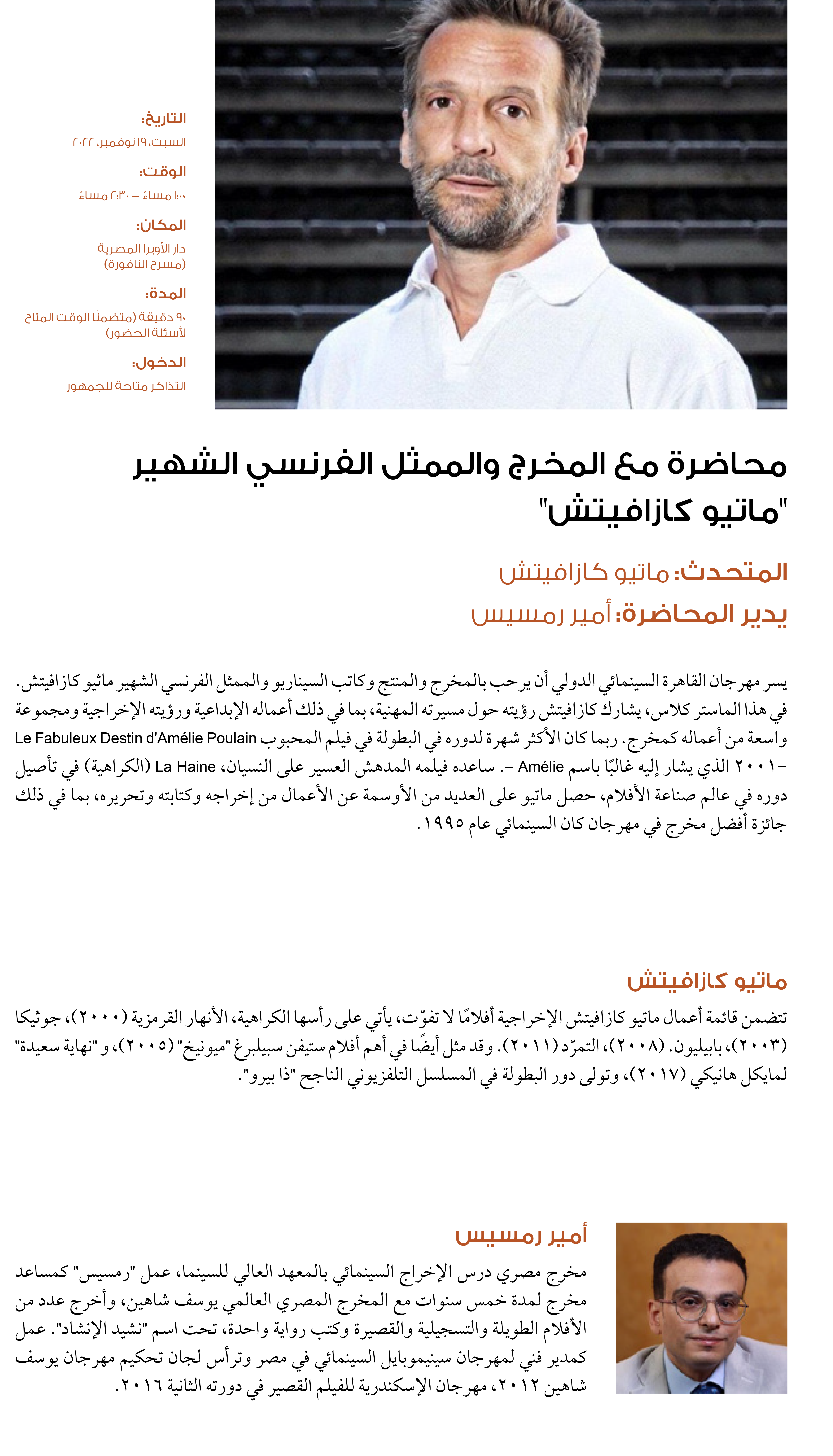 محاضرة مع المخرج والممثل الفرنسي الشهير ماتيو كازافيتش