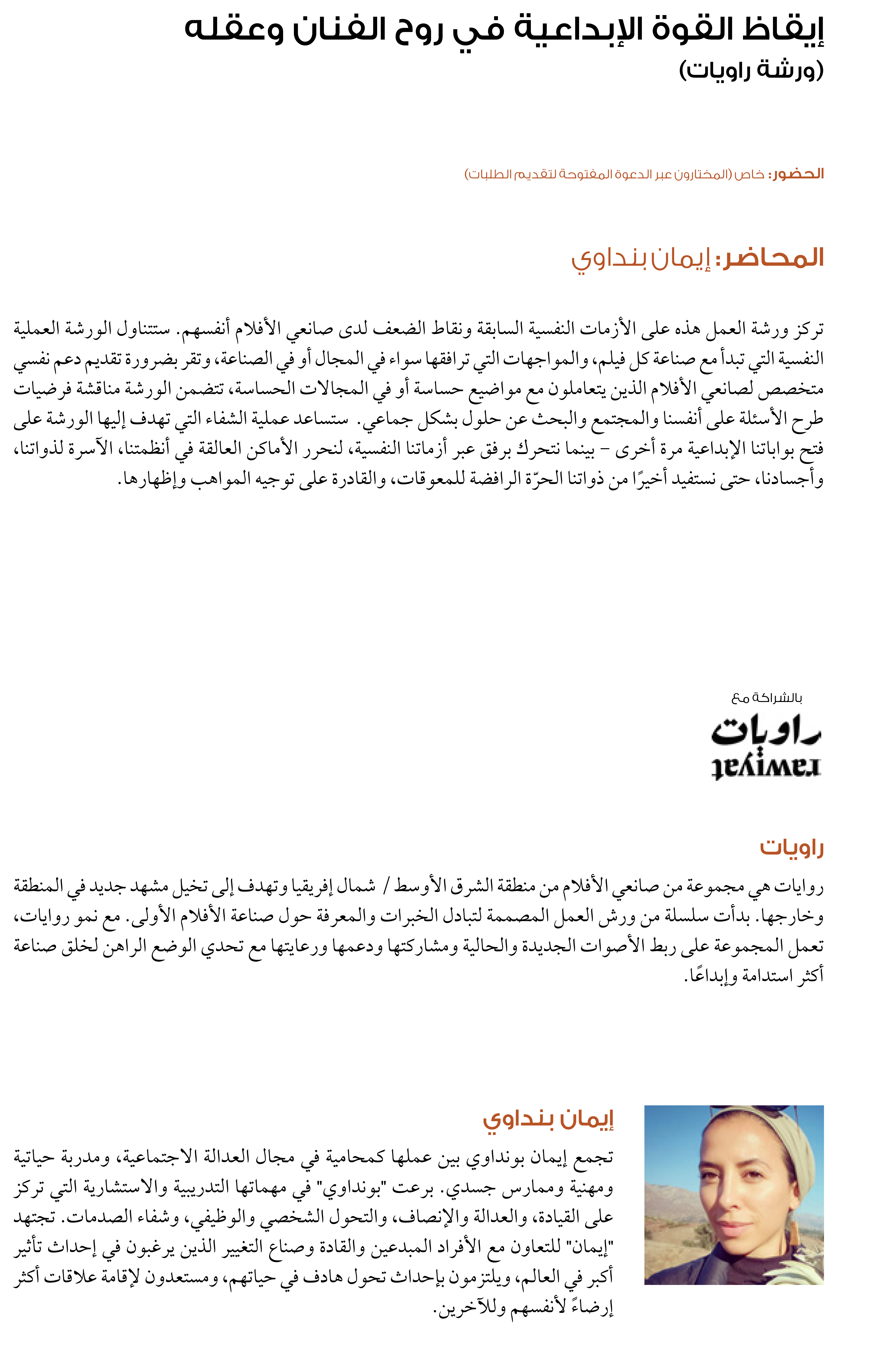 إيقاظ القوة الإبداعية في روح الفنان وعقله(ورشة راويات)