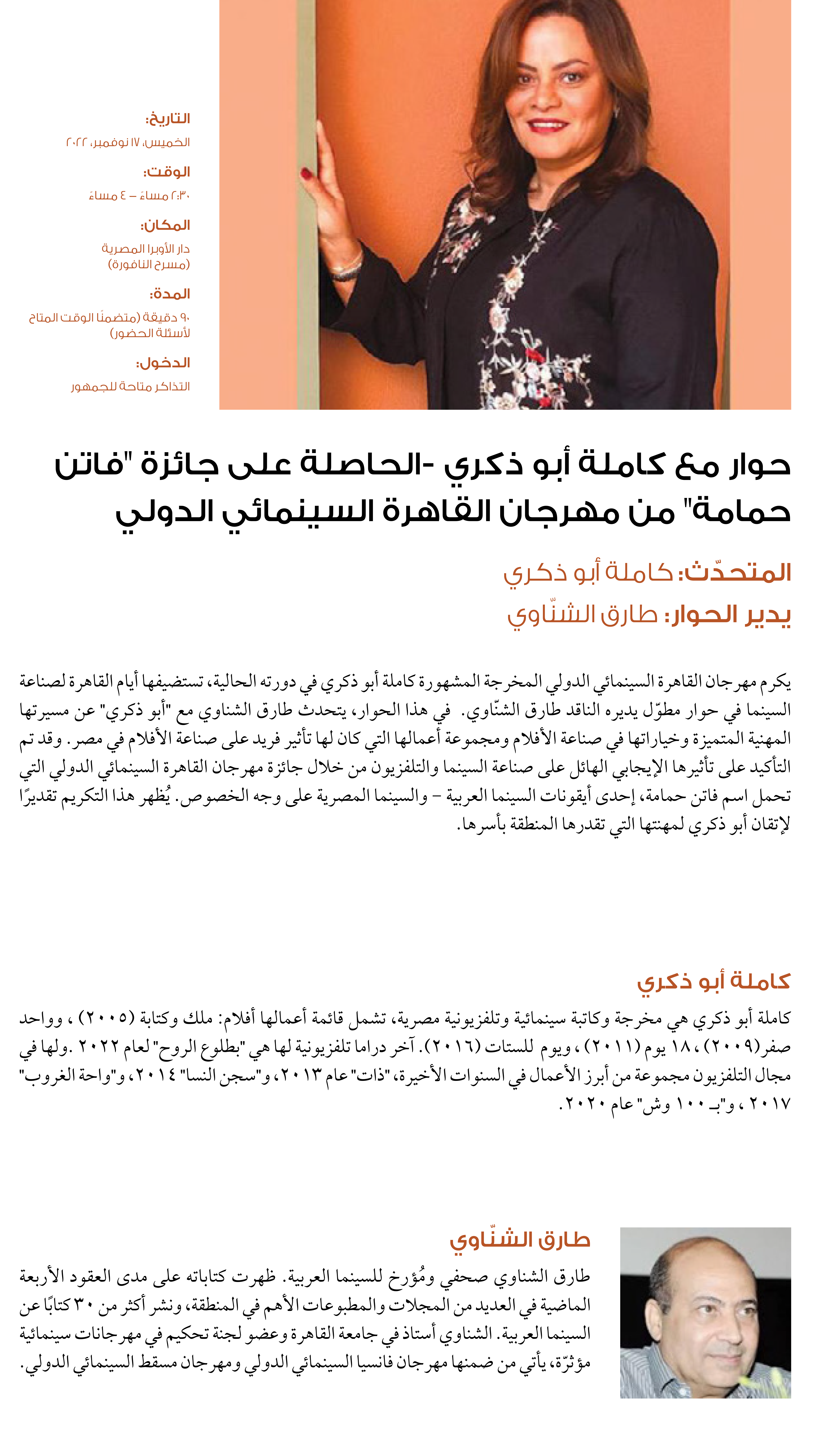 حوار مع كاملة أبو ذكري -الحاصلة على جائزة فاتن حمامةمن مهرجان القاهرة السينمائي الدولي